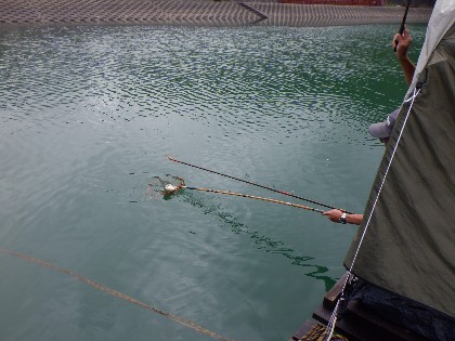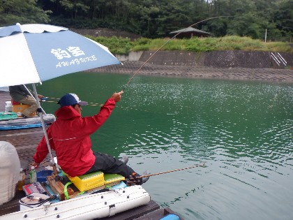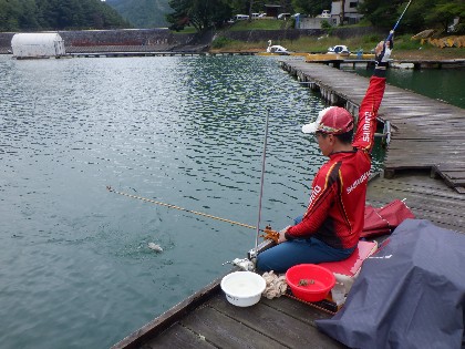 今日の美鈴湖は早朝、雨が降ったり止んだりの安定しない天気で、昨日同様風が吹き釣り難い中、県内外から10人のお客様にお越しいただきました。