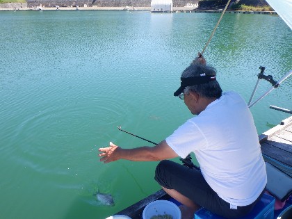 今日の美鈴湖は、風が涼を運んでくれる中、県内外から15人のお客様にお越しいただきました。