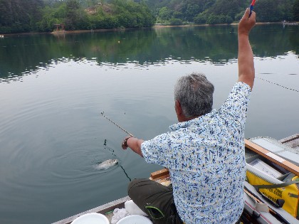 今日の美鈴湖は、風がなく穏やかな釣り日和でした。そんな中、17人のお客様にお越しいただきました。