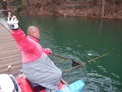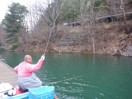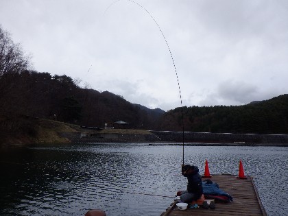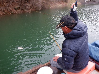 今日の美鈴湖は強風が吹き、午後に20分程雪が降りその後晴れとなる、安定しない天気の中、県外からヘラ釣りのお客様がお二人お越しいただきました。