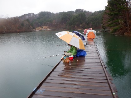 今日の美鈴湖は雨が降り続き、気温が上がらない天気の中、ワカサギ釣りは7人、ヘラ鮒釣りでは、26人のお客様にお越しいただきました。