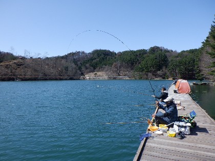 今日の美鈴湖は、よく晴れて穏やかな釣り日和でした。そんな中、ワカサギ釣りは7人、ヘラ鮒釣りでは、13人のお客様にお越しいただきました。