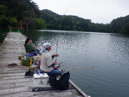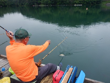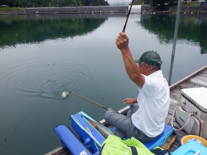 今日の美鈴湖は、天候に恵まれ穏やかな釣り日和でした。そんな中、20人のお客様にお越しいただきました。