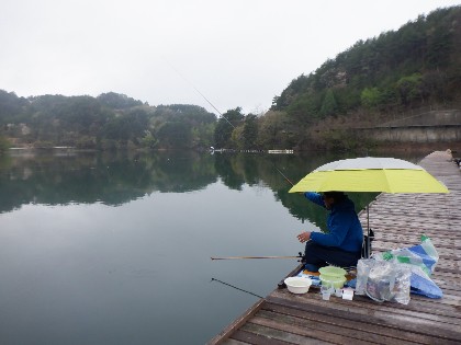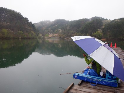 今日の美鈴湖は午前10時前後に、小雨がぱらつきましたが、穏やかな釣り日和でした。そんな中、ヘラ鮒釣りのお客様のみ7人の方々にお越し頂きました。