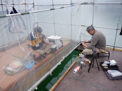 今日の美鈴湖は雨になり、ワカサギ釣りは9人、ヘラ鮒釣りでは、2人のお客様にお越しいただきました。