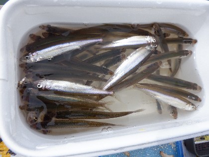 ワカサギ釣りは、午後3時の時点では桟橋で、最高は87匹の釣果でした。