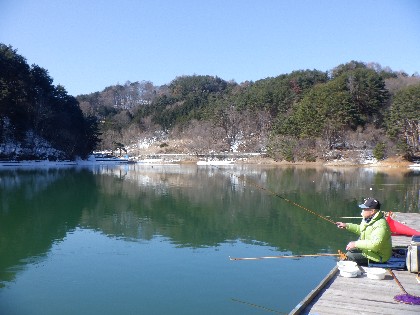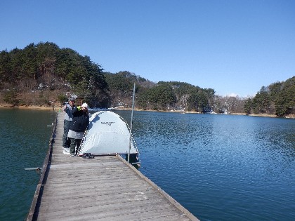 今日の美鈴湖は、ワカサギ釣り19人、ヘラ鮒釣りでは10人のお客様にお越しいただきました