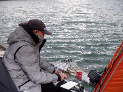 2024年3月17日(日) 天気:曇り 午前10時(気温8度、水温5度)