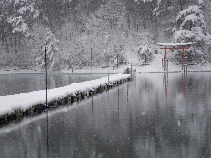 今日の美鈴湖は、昨日からの雪で積雪が20センチほどありました。そんな中、ワカサギ釣りで2人のお客様にお越しいただきました。