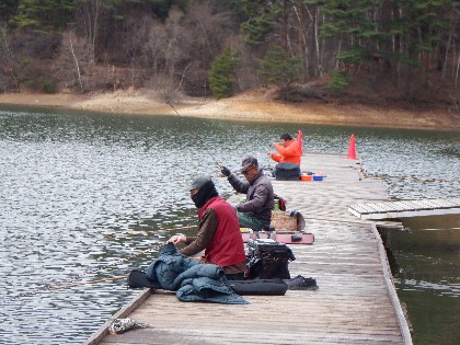 今日の美鈴湖は、ワカサギ釣りは18人、ヘラ鮒釣りでは、7人のお客様にお越しいただきました。