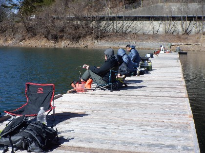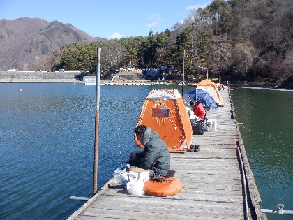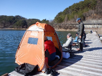 今日の美鈴湖はよく晴れて、気温が上がり午後には13度くらいなりました。そんな中、ワカサギ釣りは57人、ヘラ鮒釣りでは、14人のお客様にお越しいただきました。