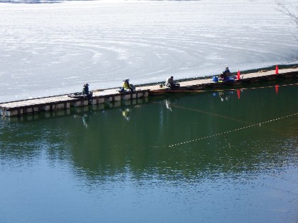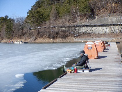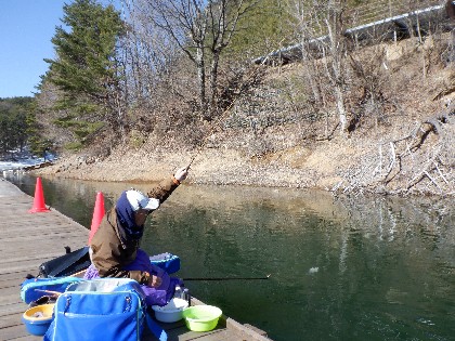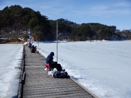 今日の美鈴湖は午前中、よく晴れていましたが、午後からは曇る中、ワカサギ釣りは20人、ヘラ鮒釣りでは、4人のお客様にお越しいただきました。