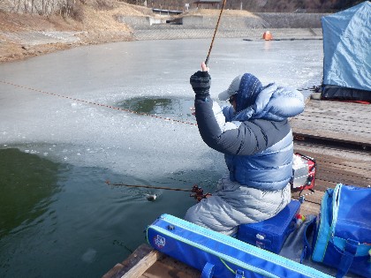 今日の美鈴湖は、気温が上がらないけれど、風が吹く事無く穏やかな釣り日和の中、ワカサギ釣りは49人、ヘラ鮒釣りでは、4人のお客様にお越しいただきました。