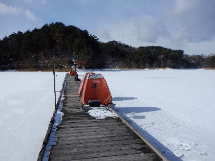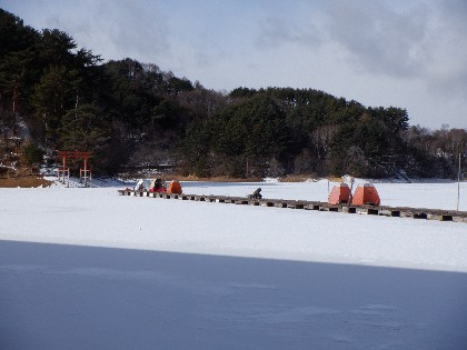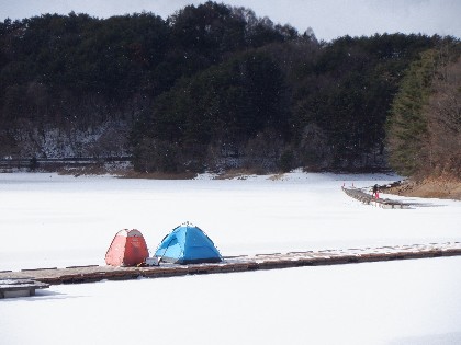 今日の美鈴湖は、午前10時くらいまで小雪が降る中、ワカサギ釣りは、8人のお客様にお越しいただきました。ヘラ鮒釣りでは0人でした。(ヘラ鮒釣りは数人分の釣り場所が、氷を割って確保されています。)