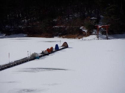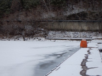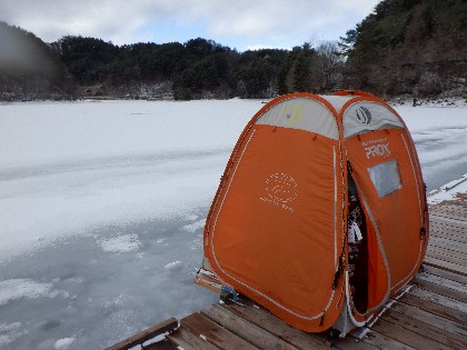 今日の美鈴湖は午後になっても、気温が上がらず寒い中、ワカサギ釣りは11人のお客様、ヘラ鮒釣りでは、どなた様もいらっしゃいませんでした。