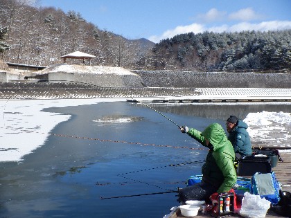 今日の美鈴湖は、気温が上がらず真冬日の中、ワカサギ釣りは18人、ヘラ鮒釣りでは、2人のお客様にお越しいただきました。