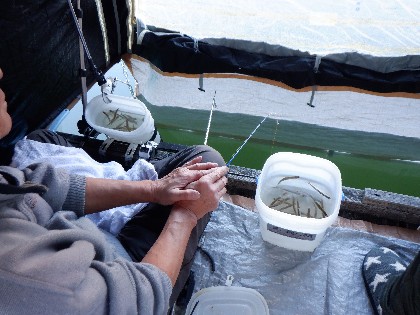今日の美鈴湖は、晴天に恵まれ絶好の釣り日和になり、ヘラ鮒釣り3人.ワカサギ釣り26人のお客様にお越しいただきました。