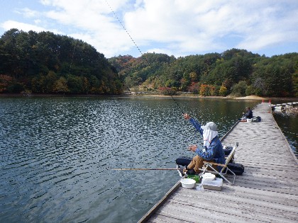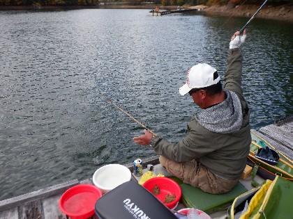 今日の美鈴湖は天候に恵まれ、絶好の釣り日和でした。そんな中、県内外から14人のお客様にお越しいただきました。
