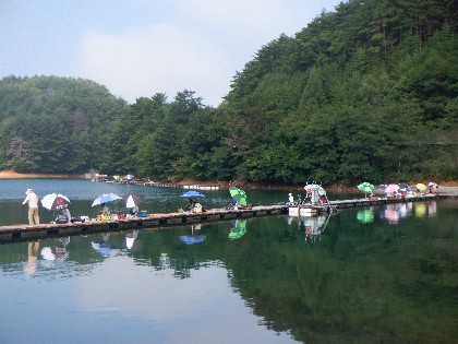 今日の美鈴湖は昨日午後からの雨が、期待した程の水位が上がらない中、四グループ様、例会ご参加の方々を主に、44人のお客様にお越しいただきました。