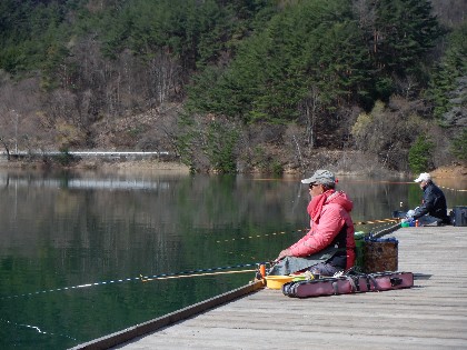 今日の美鈴湖は、薄曇りでしたが穏やかな釣り日和となりヘラ鮒釣り8人、ワカサギ釣り8人の方々にお越しいただきました。
