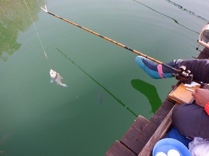 ヘラ鮒釣りは底釣りで、殆どの方が時間当たり2枚から3枚くらいの釣果で、宙釣りは時間当たり3枚から6枚くらいの釣果でした。