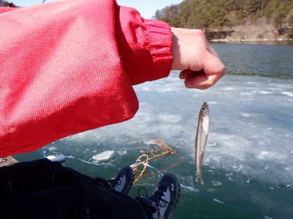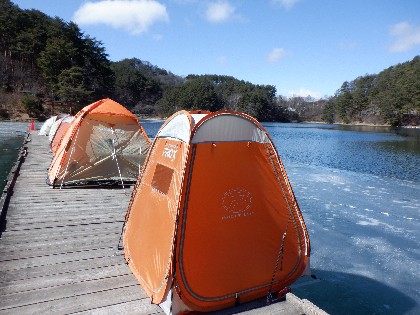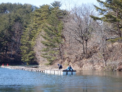 今日の美鈴湖は昨日氷が溶けた部分が、新たに1cmほど貼る中、34人のお客様にお越しいただきました。