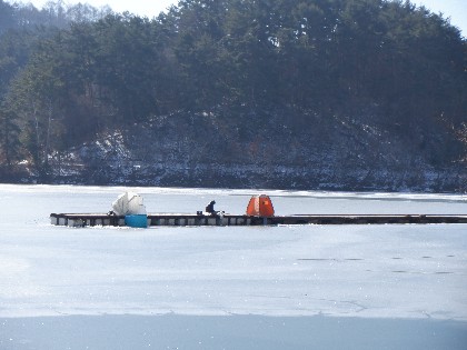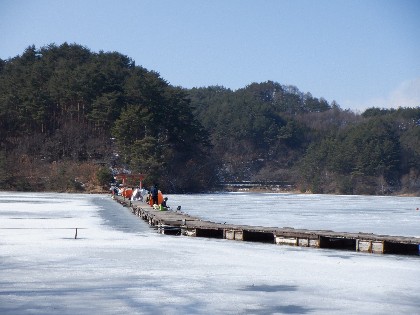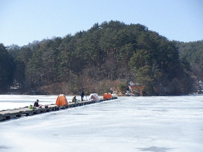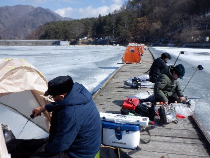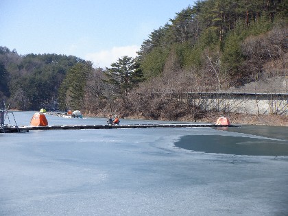 今日の美鈴湖は朝からよく晴れて、陽当たりの良い岸では氷が溶け始めました。そんな中、25人お客様にお越しいただきました。