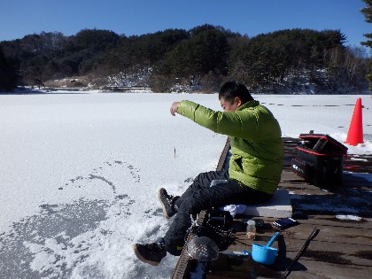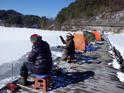 (えん堤桟橋・ワカサギ釣り)
