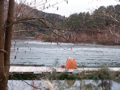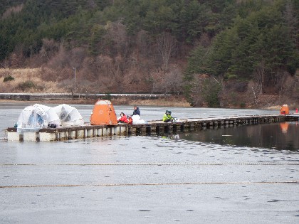 今日の美鈴湖は、気温が上がり湖面を覆う氷が溶ける中、48人のお客様にお越しいただきました。