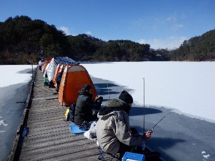 (えん堤桟橋・ワカサギ釣り)