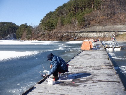 (えん堤桟橋・ワカサギ釣り)