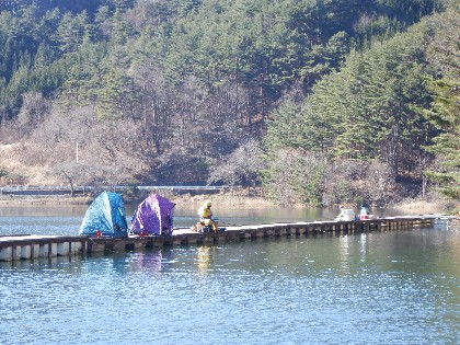 今日の美鈴湖は、よく晴れ穏やかな釣り日和の中、ヘラ鮒釣りで8人、ワカサギ釣りでは44人のお客様にお越しいただきました。