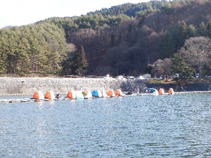 今日の美鈴湖は、よく晴れていてもあまり気温が上がらく寒い中、ワカサギ釣りで42人のお客様にお越しいただきました。
