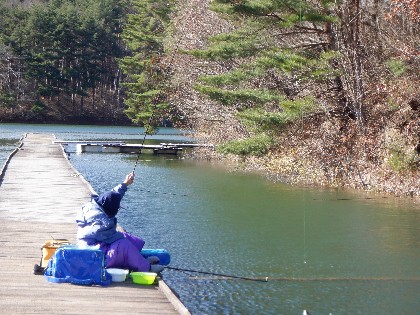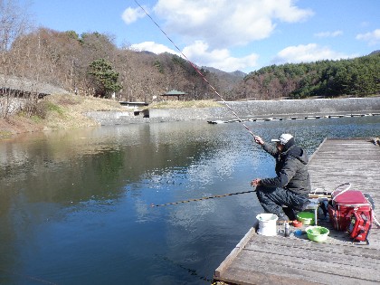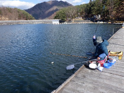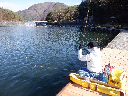 今日の美鈴湖は、よく晴れて穏やかな釣り日和の中、4人のお客様にお越しいただきました。