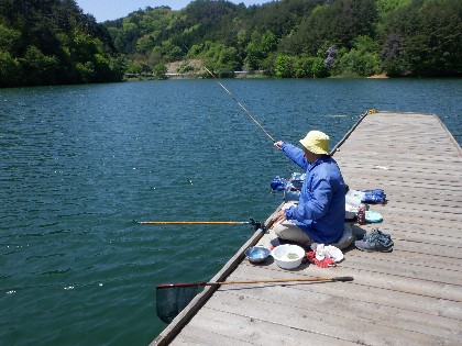 今日の美鈴湖は、久々の晴天になり、ヘラ鮒釣りで8人のお客様にお越し頂きました。