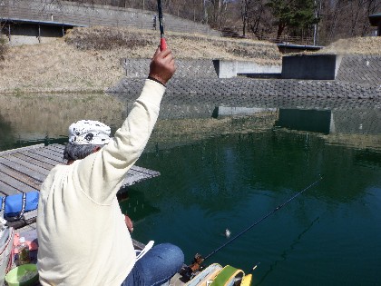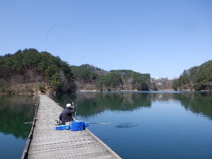今日の美鈴湖は好く晴れて、気持ちの好い青空の下ヘラ鮒釣りで9人、ワカサギ釣りでは2人のお客様にお越し頂きました。