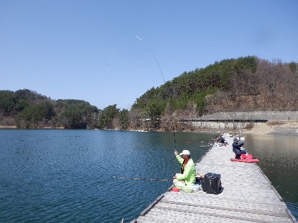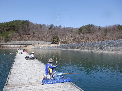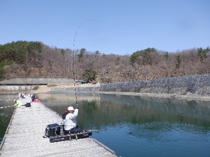 今日の美鈴湖は好く晴れてはいても、吹く風が寒く感じる天気の中、ヘラ鮒釣りで16人、ワカサギ釣りでは6人のお客様にお越し頂きました。
