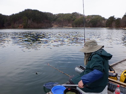 今日の美鈴湖は時おり吹く風が冷たく感じる中、ヘラ鮒釣りで11人ワカサギ釣りでは、6人のお客様にお越し頂きました。