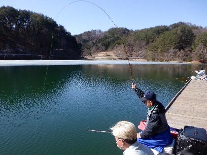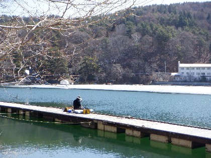 今日の美鈴湖は昨夜の雨で、ウテナ荘下桟橋、えん堤桟橋と水道下桟橋の氷がすっかり融けた中、ヘラ鮒釣りで3人、ワカサギ釣りでは10人のお客様にお越し頂きました。