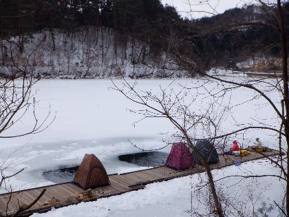《えん堤桟橋・ワカサギ釣り》