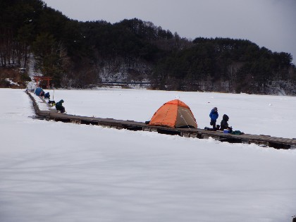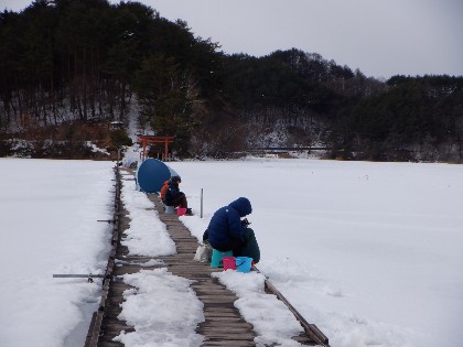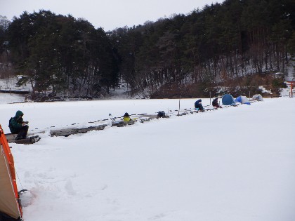 今日の美鈴湖は午前中、小雪が降り午後から晴れとなる中、ヘラ鮒釣りで7人、ワカサギ釣りでは38人のお客様にお越し頂きました。