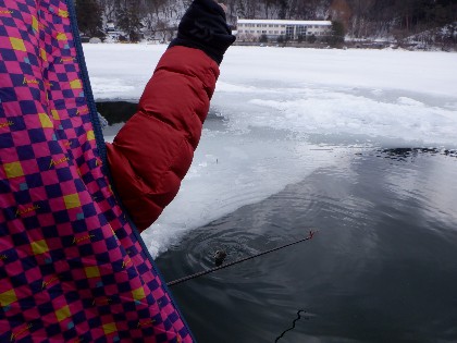 2022年2月27日(日)  天気:雪後晴れ  午前10時(気温2.5度、水温3度)