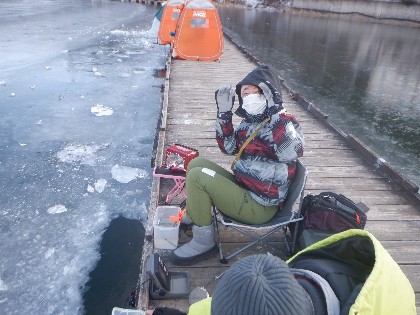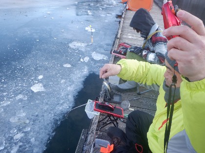 *ワカサギ釣りは、各桟橋数匹から50匹くらいの釣果でした。