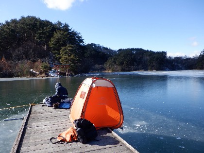 今日の美鈴湖は、天候に恵まれて好く晴れた中、ヘラ鮒釣りで2人、ワカサギ釣りでは16人のお客様にお越し頂きました。