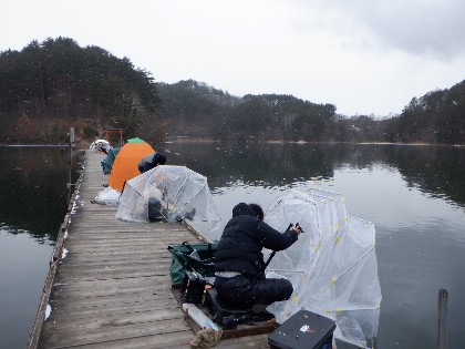 今日の美鈴湖は気温が昼を過ぎても、マイナスのままで真冬日の中、ヘラ鮒釣りで4人、ワカサギ釣りでは48人のお客様にお越し頂きました。