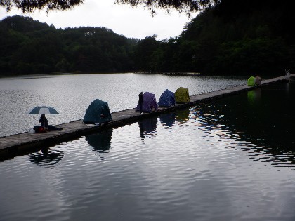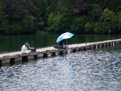今日の美鈴湖は曇りで、時々雨が降ったり止んだりの天気でした。そんな中、ヘラ鮒釣りで10人、ワカサギ釣りでは3人のお客様にお越し頂きました。