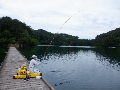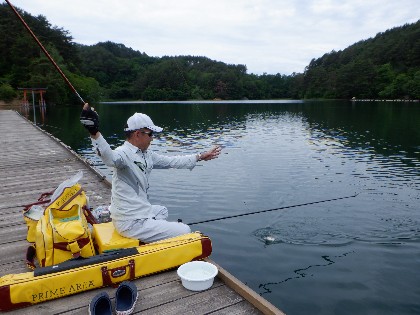 今日の美鈴湖は曇りで、心地のよい風が吹く中、ヘラ鮒釣りで8人、ワカサギ釣りでは2人のお客様にお越し頂きました。