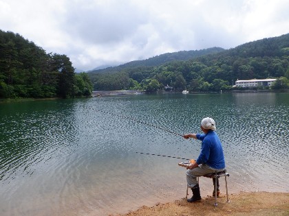 今日の美鈴湖は曇りで、あまり風も吹く事も無い釣り日和でした。そんな中、4人のヘラ鮒釣りのお客様にお越し頂きました。
