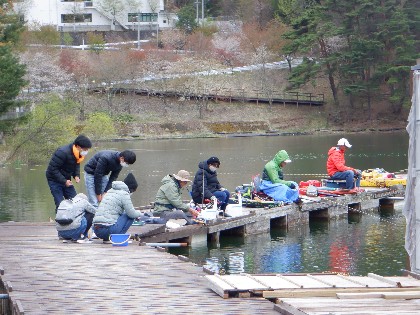 今日の美鈴湖は午前中、穏やかな釣り日和でした。そんな中、ヘラ鮒釣りで18人、ワカサギ釣りでは15人の、お客様にお越し頂きました。