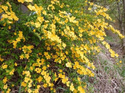 [美鈴湖・湖畔の遅咲きの桜&ヤマブキ・満開]